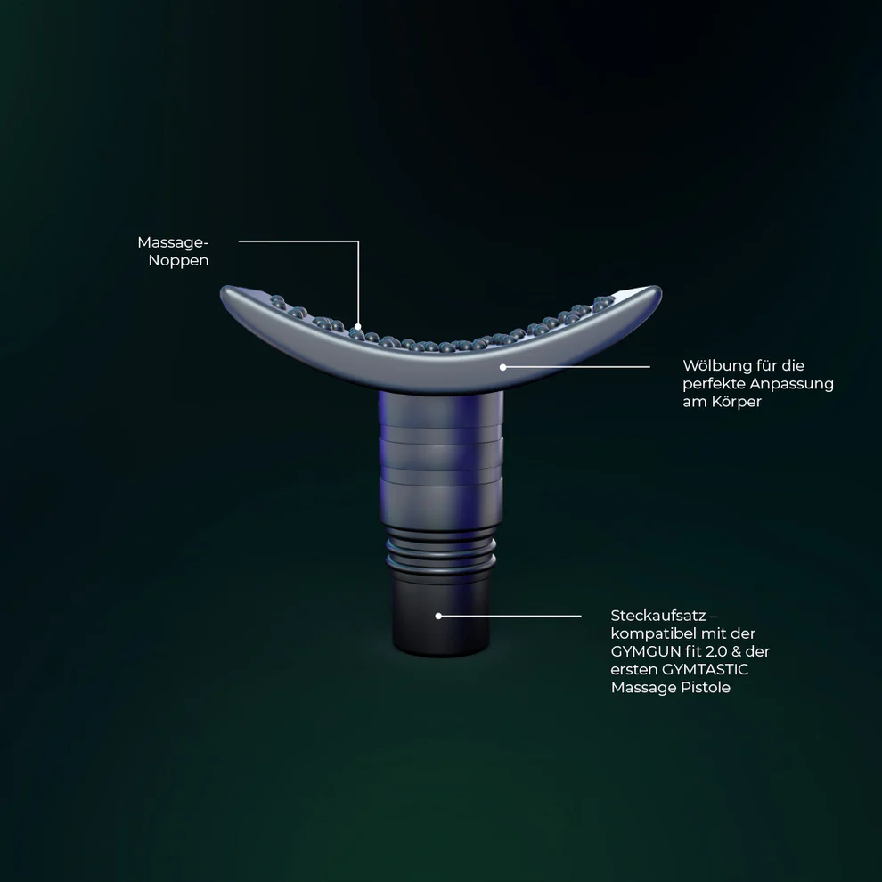 | 🟠 Bow Head | Gebogene, geschwungene Form | Ideal für lange, schmale Muskelgruppen wie den Tractus iliotibialis, Unterarme, Schienbeine und die Schulterblattränder. Sorgt für eine gleichmäßige, großflächige Anwendung und effektive Muskelentspannung. |